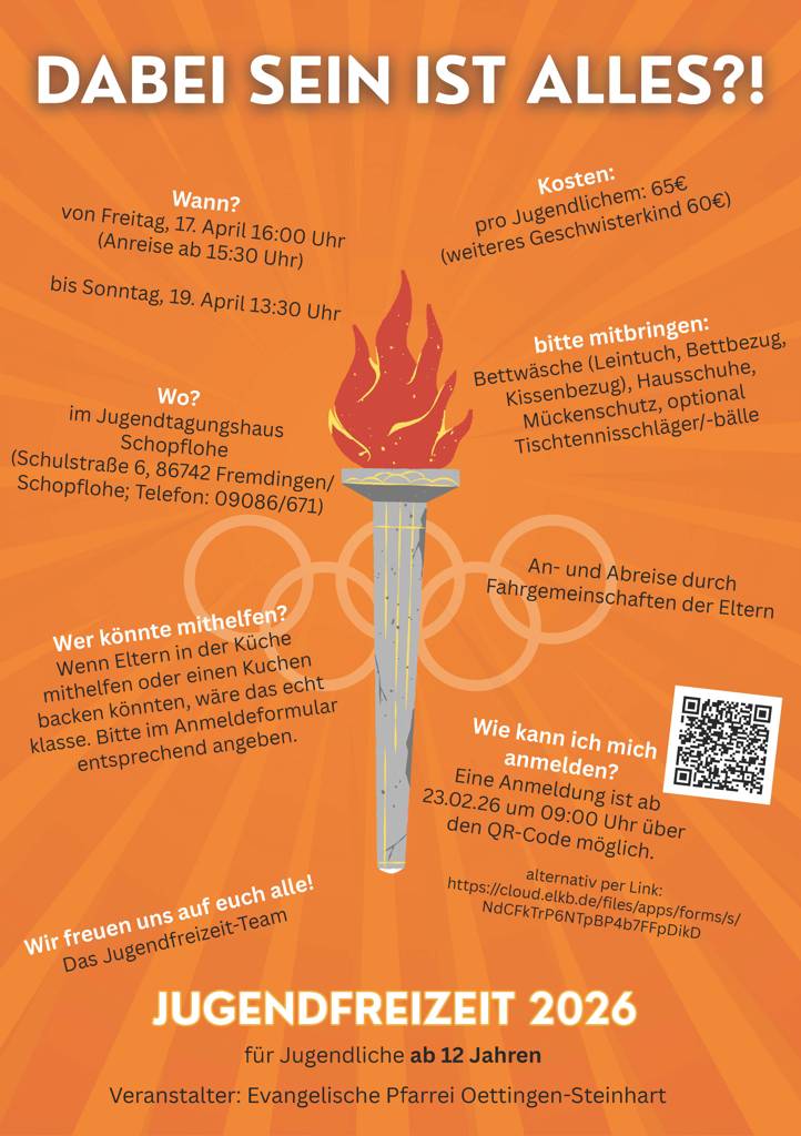 vom 17.-19.04.2026 ist wieder eine Jugendfreizeit in Schopflohe. Anmeldungen sind noch möglich!