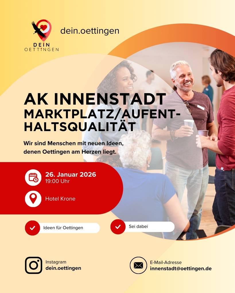 Am Donnerstag, 29. Januar 2026 findet um 18:30 Uhr eine öffentliche Sitzung des Stadtrates im Großer Sitzungssaal des Rathauses Oettingen statt.